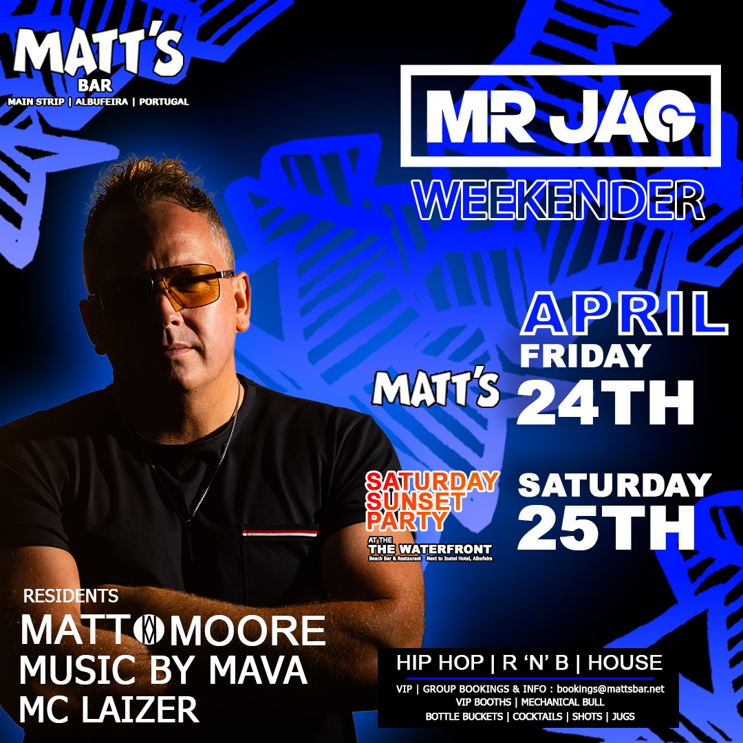 If you’re looking for one of the standout nightlife events in Albufeira, the Mr JAG Weekender at Matt’s Bar is not to be missed.